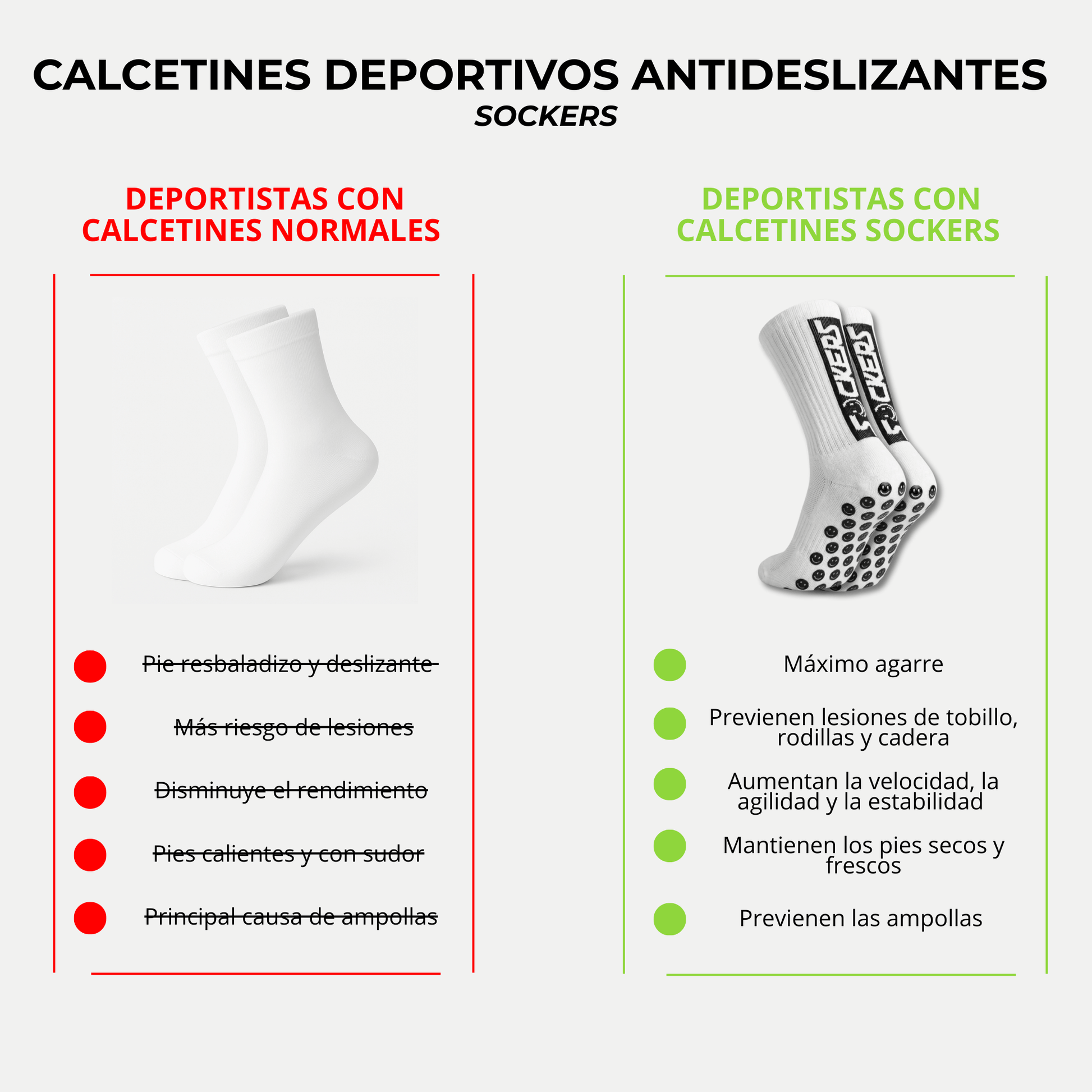 Gracias al agarre y sujeción avanzados, los calcetines antideslizantes de Sockers te ayudan a reducir la tensión y el riesgo de lesiones en tobillos, rodillas y caderas. ¡Cuídate para poder seguir jugando!